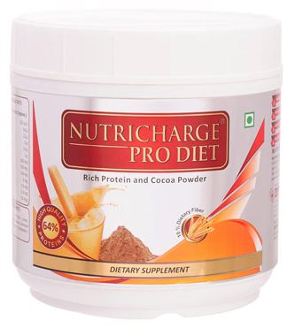 Nutricharge ProDiet contains high quality Soya protein isolate from DuPont USA, dietary fiber from Matsutani, Japan and cocoa from Belgium. Add one scoop of Nutricharge ProDiet in a glass of milk to make a delicious chocolate protein shake.